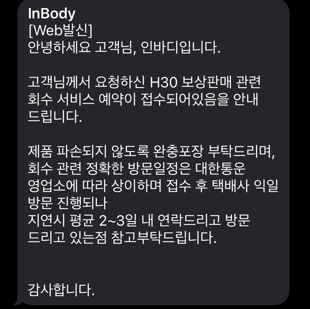 수거 당일 아침에 문자가 오기 때문에 제품을 미리 반송할 준비를 해놓는게 좋음.