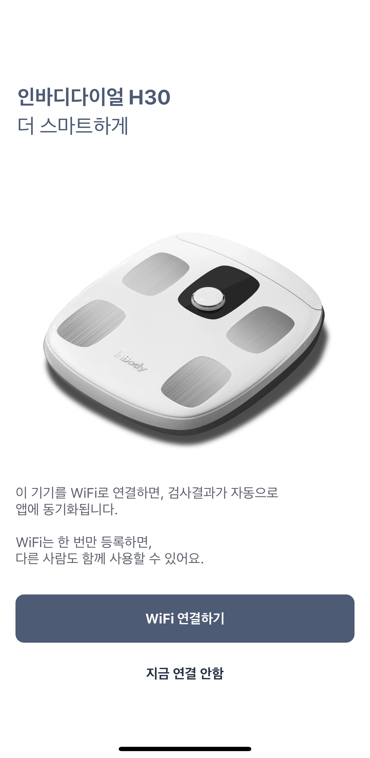 와이파이 모델의 장점이라면 인바디 체중계를 집에서 사용하는 와이파이와 연결을 해주면 측정 후 나중에 앱을 열었을 때 측정된 데이터를 수신받을 수 있다는 점.
