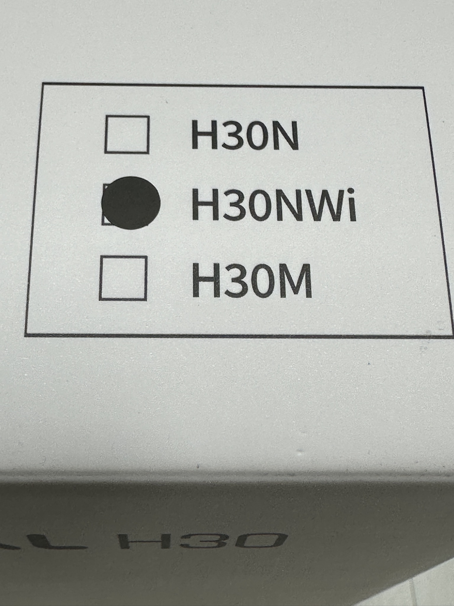 박스 외부에 H30NWi 와이파이 모델인 게 스티커로 붙여서 표시가 되어있고, 내가 받은 물품은 2023년 7월 25일에 생산된 제품임을 확인할 수 있음.