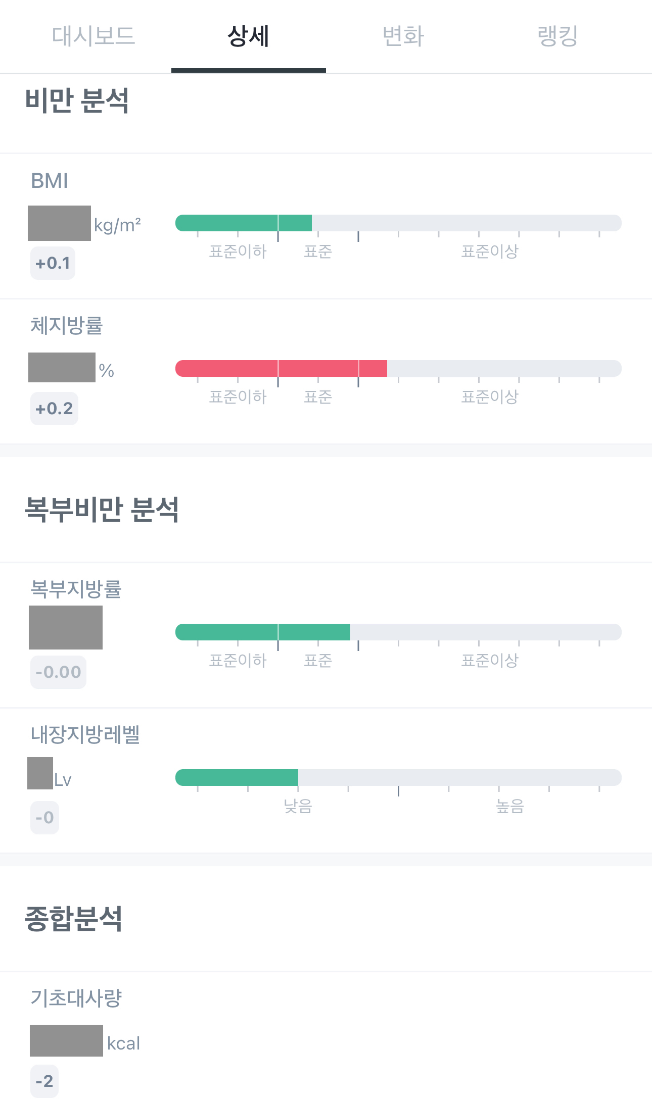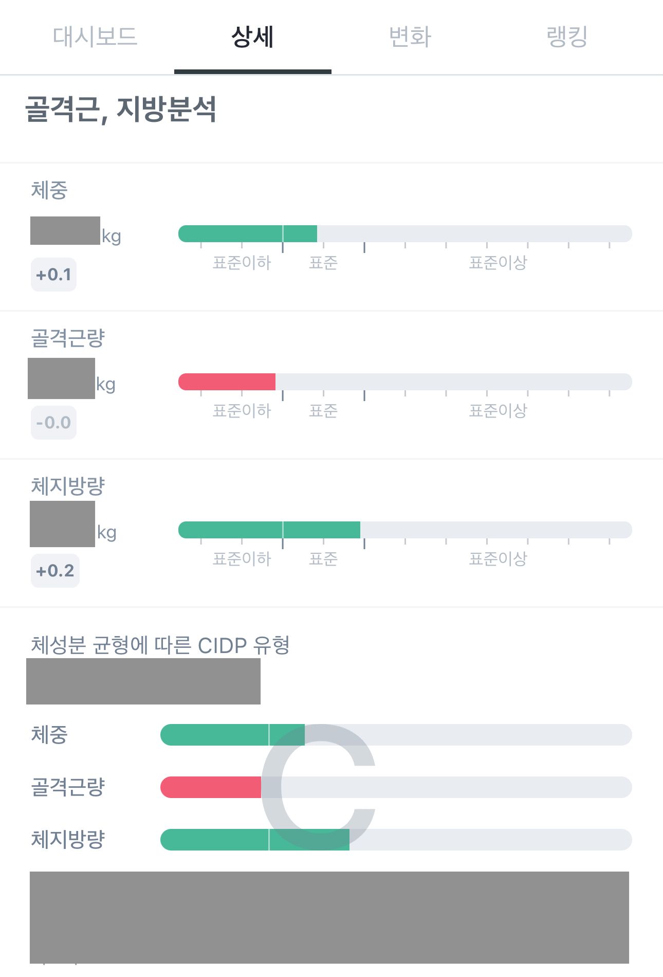 근력운동의 강도를 좀 더 늘려야 골격근량이 늘어나지 않을까라는 생각을 해보게 된다.