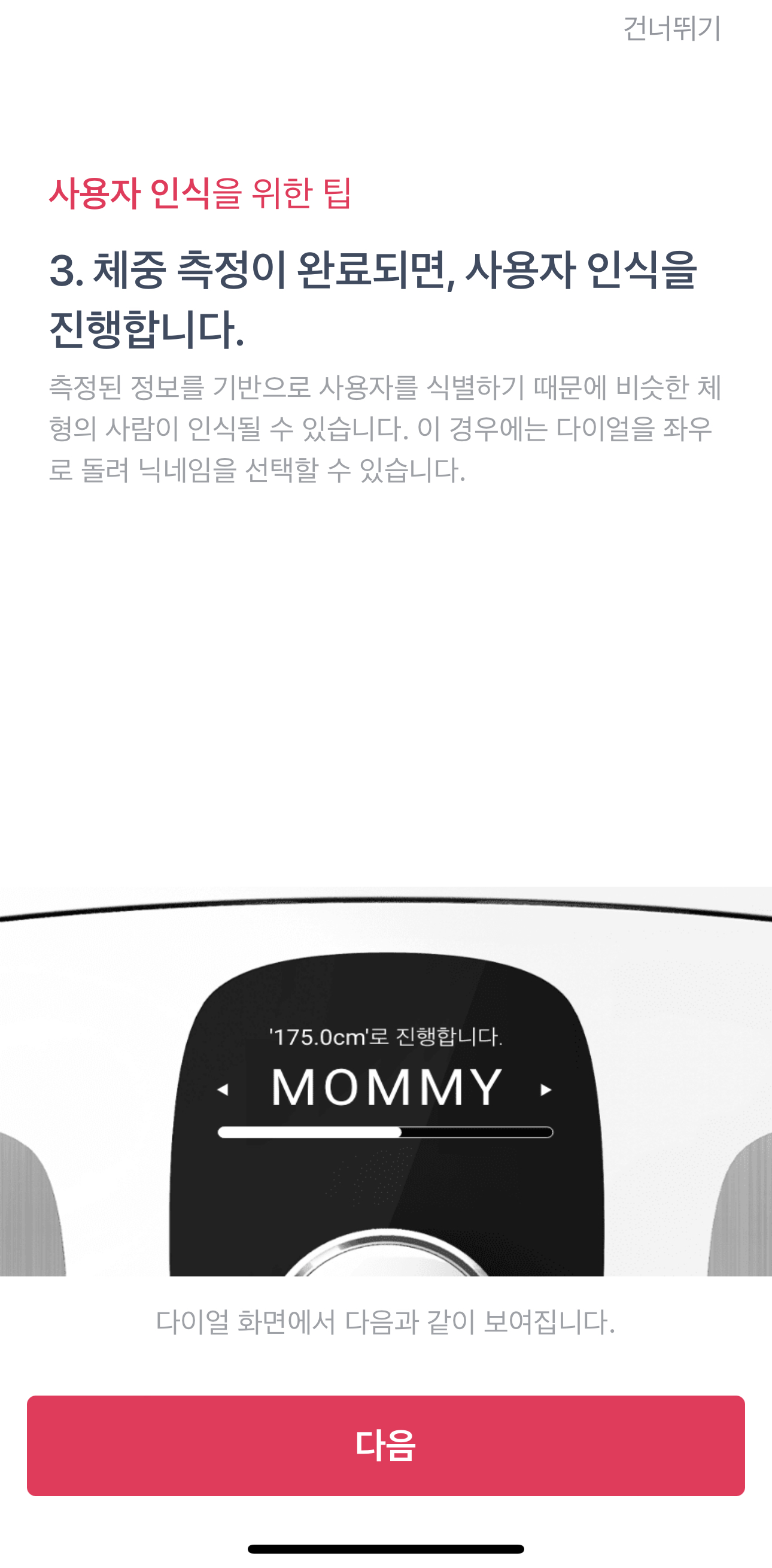 2주간 매일 아침 사용하면서 딱 두 번 사용자 인식에 실패를 한 적이 있는데, 인바디 측정을 하려고 앞만 보고 있다 보니 사용자 인식을 잘못한 걸 측정 후에 알게 되었다. 체중을 바탕으로 사용자를 인식해서 그런 게 아닌지 추측해 본다.