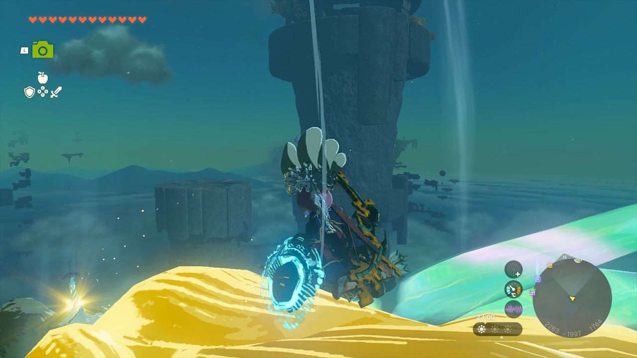 남라넬 하늘제도에 보이는 하늘섬에서 접근이 가능한 것 같은데, 저곳은 하늘에서 떨어지는 물이 조라의 마을과 연결되는 걸로 보았을 때, 조라의 마을 퀘스트를 진행하면 저 하늘섬으로 갈 수 있을 것 같습니다.